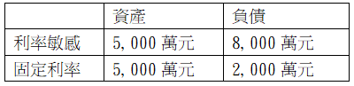 12. A銀行資產負債如表所示。以缺口分析(gap analysis)衡量,利率上升2%,會導致利潤如何?