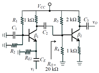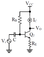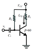 189. 電晶體放大電路藉由如圖所示的分壓偏壓電路,使得該電晶體的輸出直流電壓工作在V