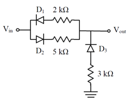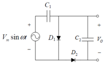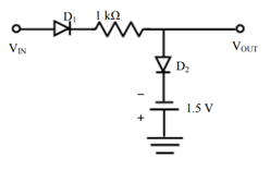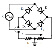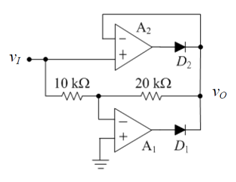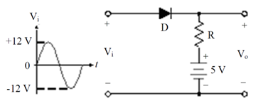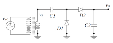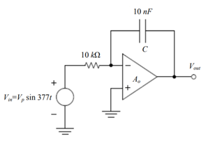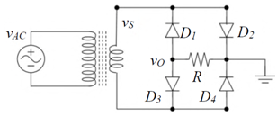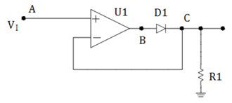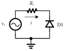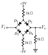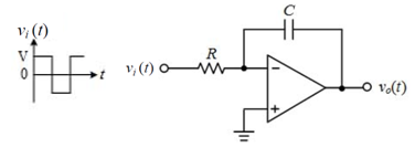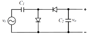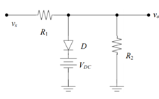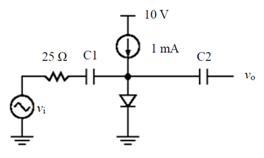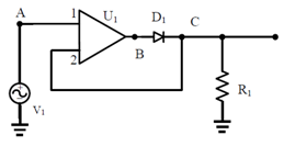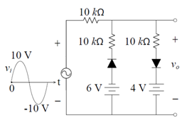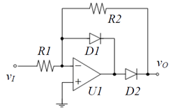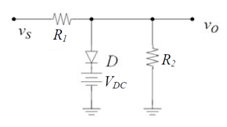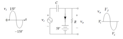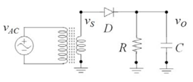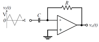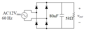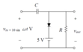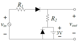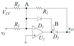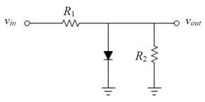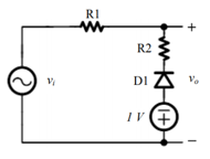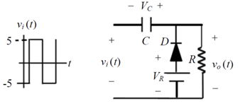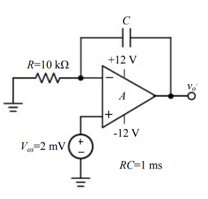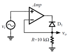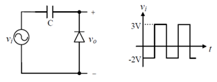 =R=1MΩ且C=0.01μF;若在電容器C旁邊並接一顆二極體,其順向電壓為0.7V,則輸出電壓v