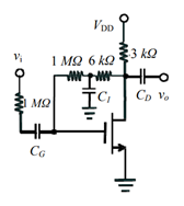 =1kΩ,各單級放大器的電壓增益分別為-50、-3dB、及20,決定該串級放大電路的功率增益為多少dB? (110年度考題)