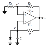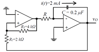 193. 在某個瞬間測得流過如圖所示波形產生電路中電容器C=0.2μF的電流i(t)=2mA,決定輸出v