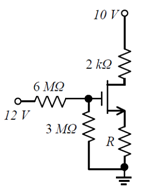 =3V。若要使電晶體維持工作在主動模式(Active-mode)而不進入飽和模式(Saturation-mode),則R