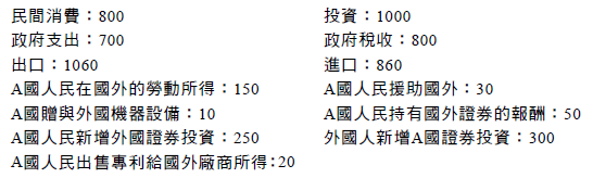 (一)分別計算A國本年度的國民所得毛額(gross national income, GNI)、民間儲蓄毛額(S