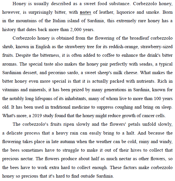 20. Which of the following statements about corbezzolo honey can beinferred from the passage?