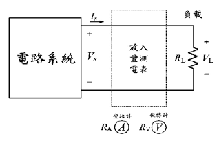 為伏特計的內阻。試就下列量測狀況,分別將圖中的伏特計和安培計植入連接於系統和負載之間的虛線框內,同時直接由伏特計和安培計讀取電壓和電流值以計算負載功率。